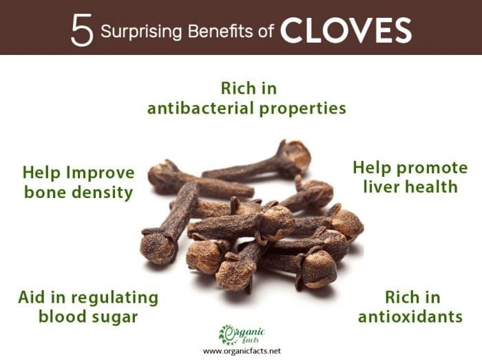 For centuries, cloves have been used to relief pain. Especially when people experienced tooth aches. This is because of a substance called eugenol, which gives cloves their signature scent. And eugenol has narcotic properties. That is why cloves can be used to ease your pain.